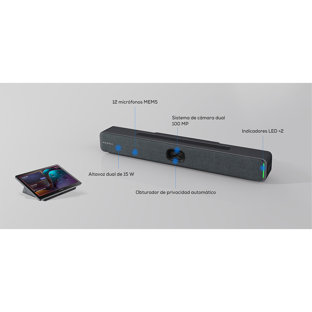 MAXHUB XBar V50 KIT| Barra de videoconferencia todo en uno con Android MDEP, cámara dual 4K, consola táctil y audio inteligente, ideal para salas pequeñas y medianas con Microsoft Teams.